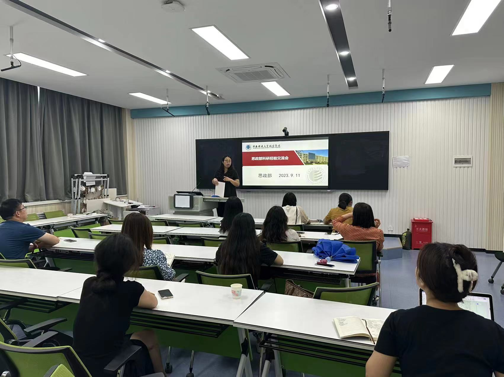 为进一步挖掘科研工作的新内涵、新思路、新举措,提高思政部各位教师的科研能力和科研水平,同时了解强思政部各科研小组在开学以来科研开展的相关工作,2023年9月11日16点,思政部在教217召开本学期第一次科研经验交流会,会议由苏婕老师主持,各教研室科研小组就近期展开的科研工作进行汇报和交流。