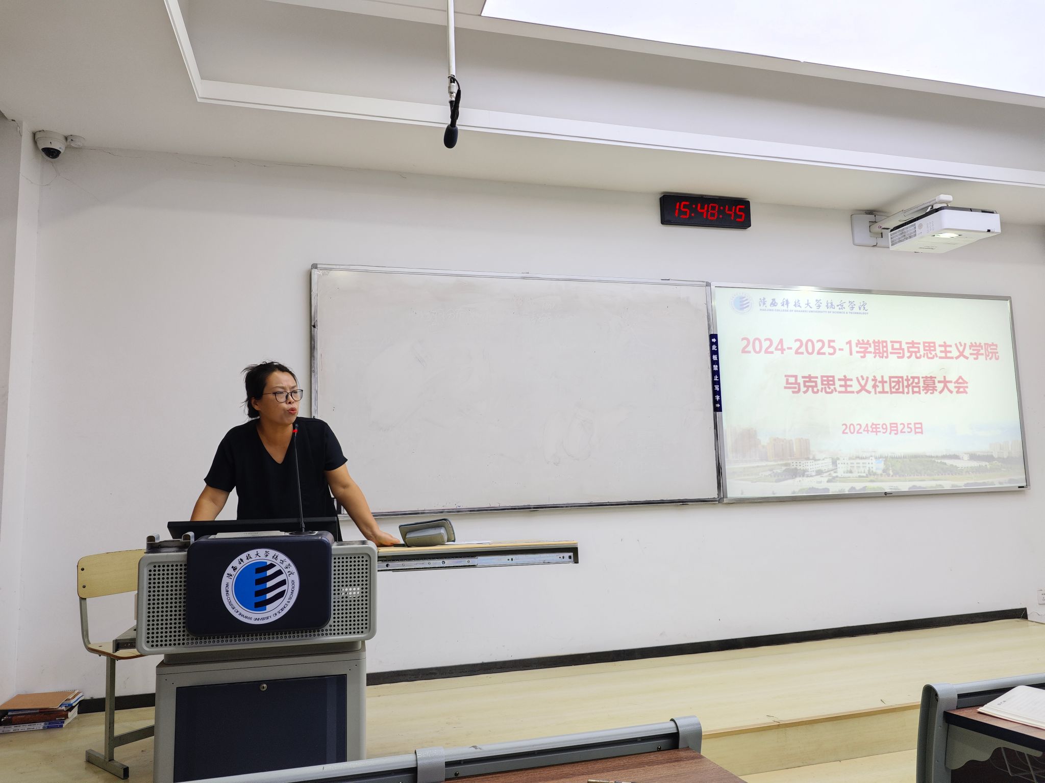 最后苏老师总结讲话。苏老师期望社团能够成为一个思想碰撞、知识共享的殿堂,让大家在深入探索马克思主义理论的同时,也能紧跟时代步伐,关注社会热点,提升个人的政治素养和理论水平。此外期望社团能组织丰富多彩的实践活动,如社会调研、志愿服务等,让大家在实践中深化理论认识,增强社会责任感。并期望同学们能够得到全方位的锻炼,希望通过参与社团的日常管理、活动策划与执行,提升自己的组织协调能力、团队合作能力和领导能力。也希望在社团的学术交流、辩论赛中,锻炼自己的思维能力和口头表达能力。