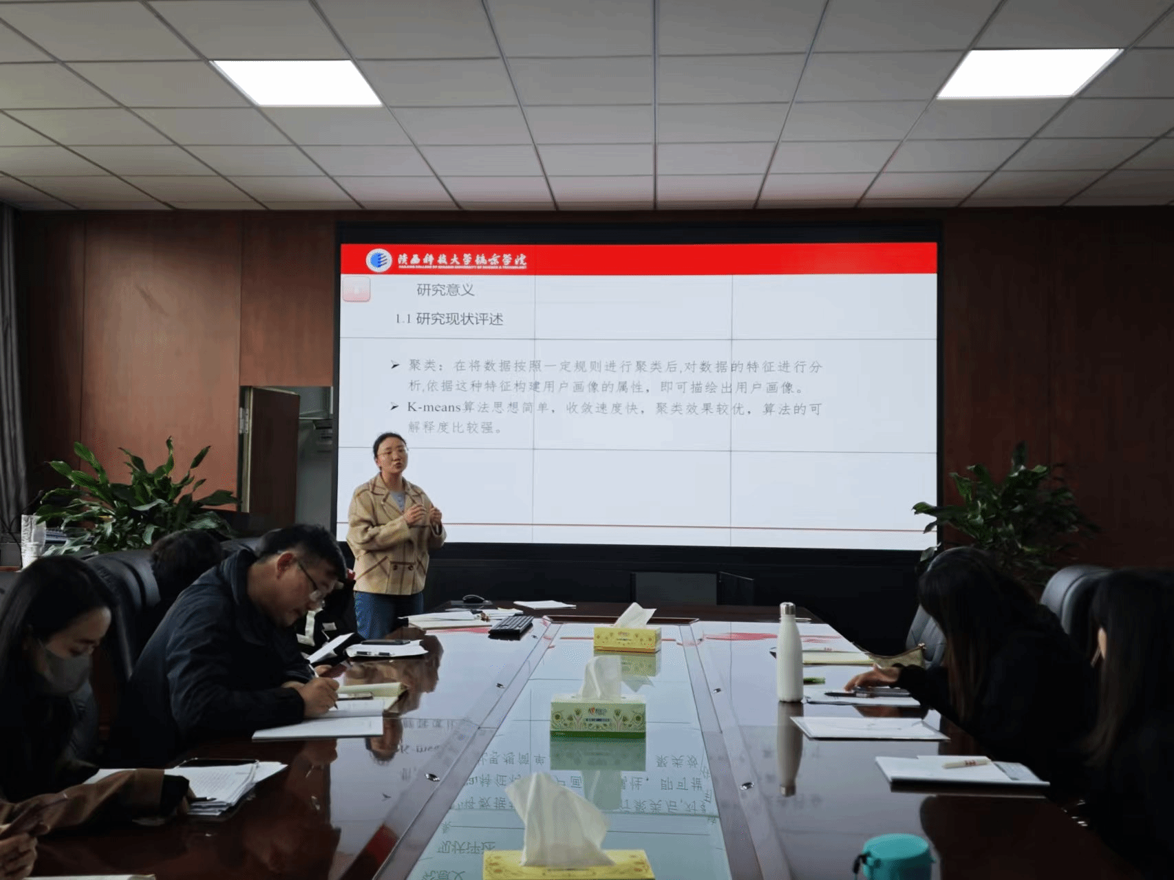 学科带头人李春梅老师围绕汇报进行了点评,肯定了项目汇报准备充分,内容详尽的优点。王科老师提出了汇报中重点问题的修改建议。苏婕经理从总体上对三位老师的预答辩进行了点评,并就汇报重点不突出、内容逻辑未完全理顺,下一步修改进行了具体安排。