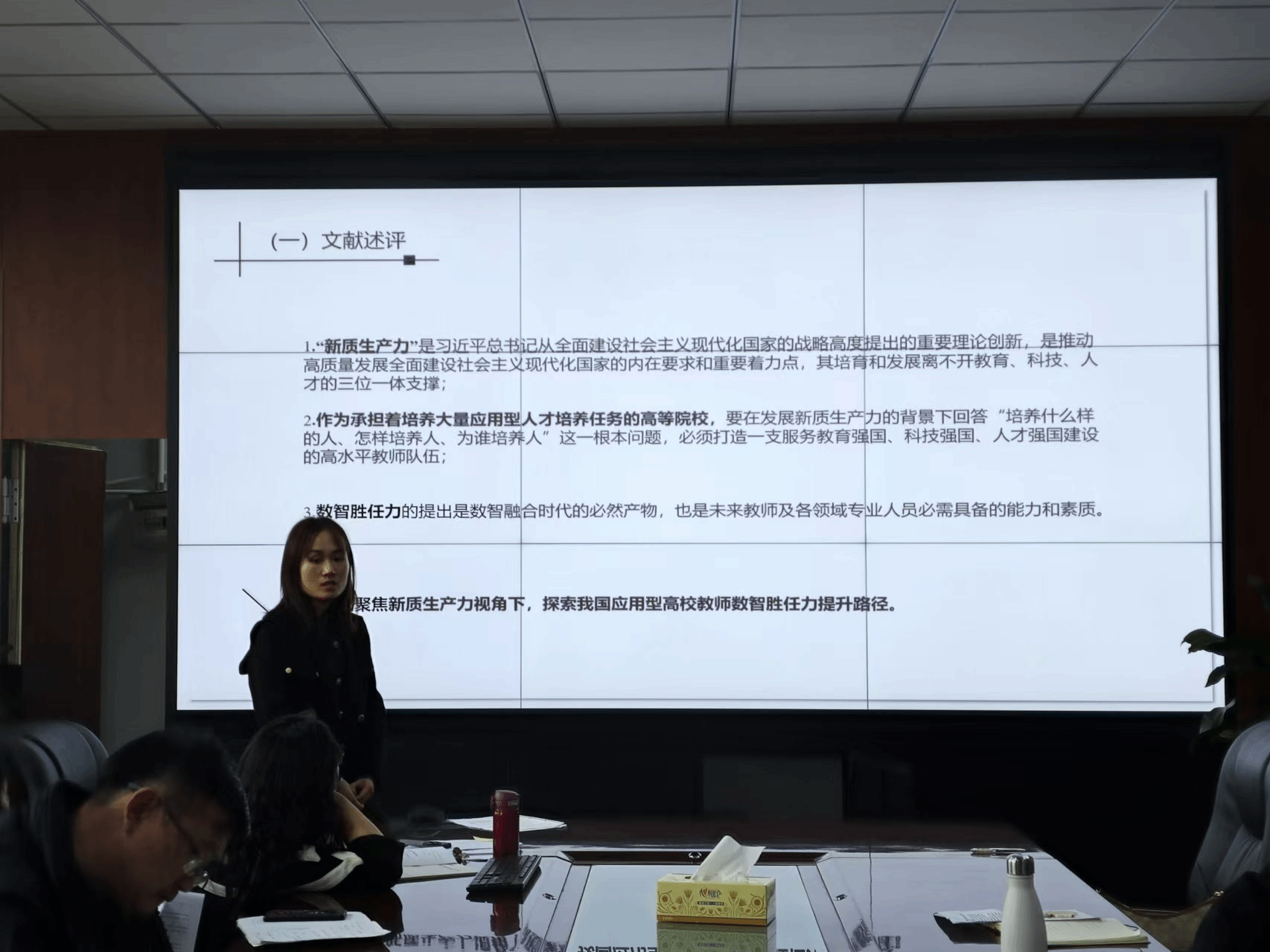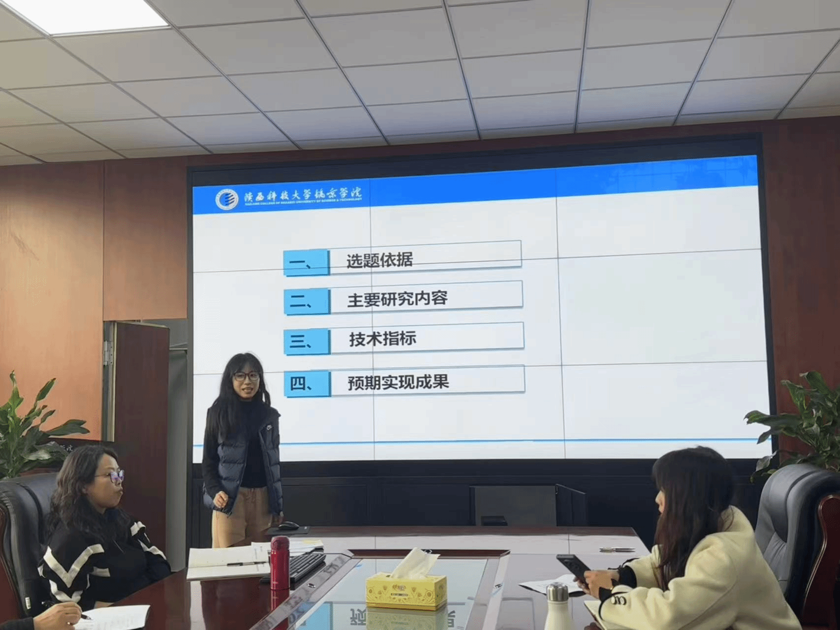 会议的第三个内容是进行陕西省哲社科项目申报预答辩。李维钰、郑佳梅、任芳三位老师分别进行了汇报。