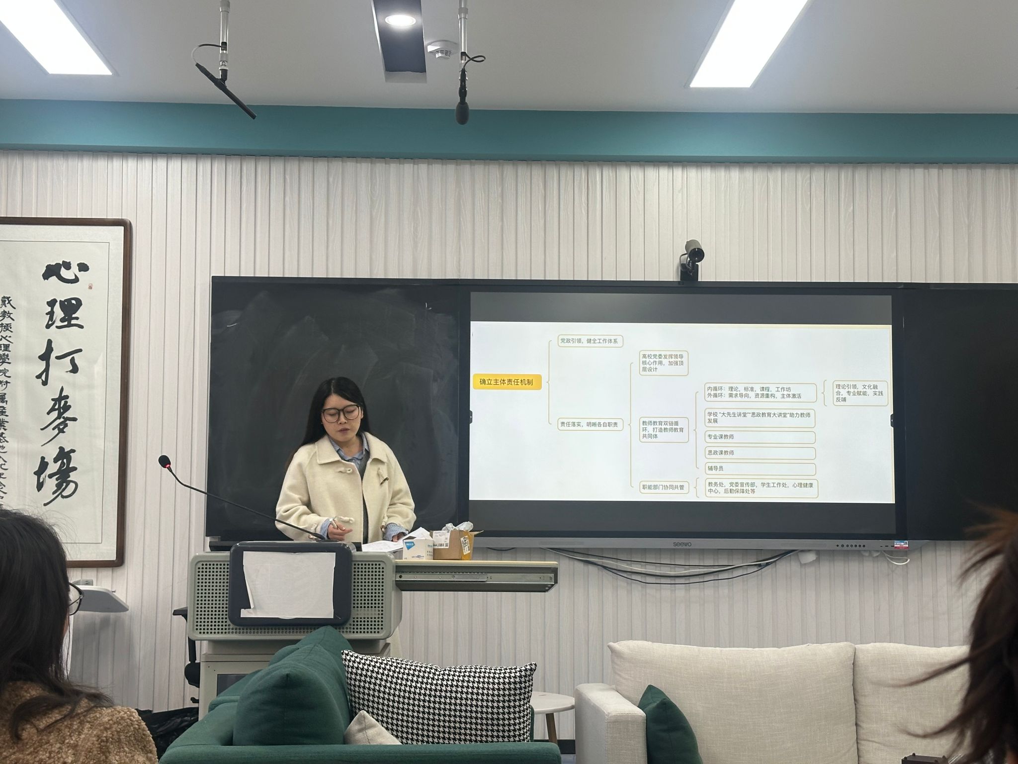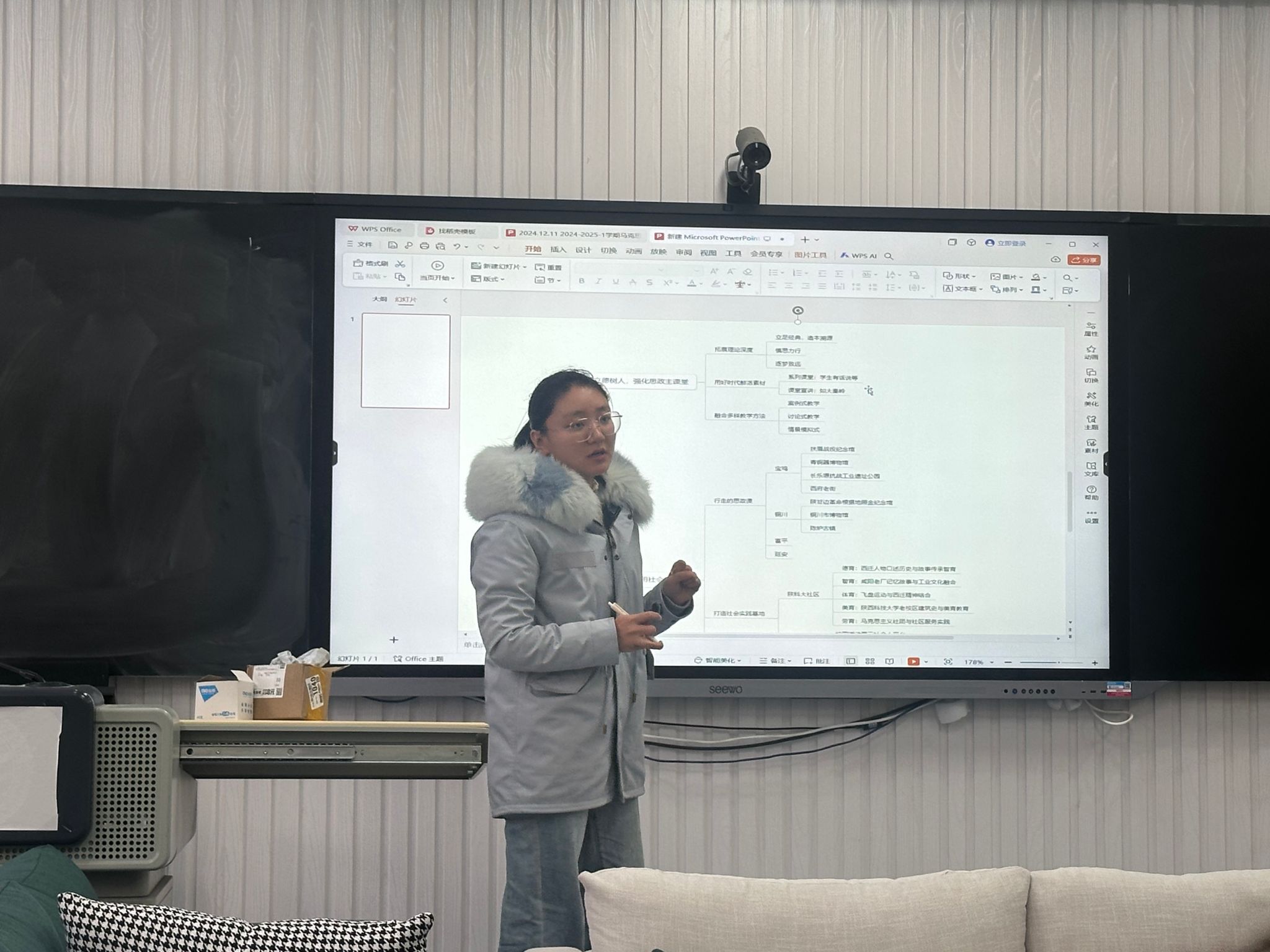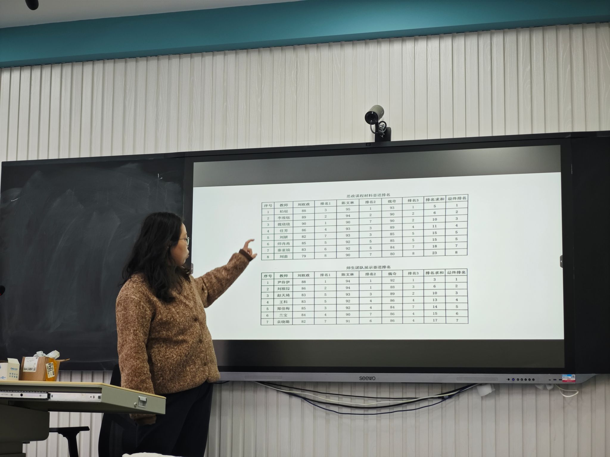 苏婕老师首先明确了2024年12月教学工作要点并反馈了各位教师参加本学期“思政大练兵校”的结果;苏婕老师指出各位老师大练兵过程的优缺点并给出了相应的意见和建议,希望各位老师在今后的教学中可以取长补短相互沟通交流,并提出后期会单独组织一次观看各位老师录课视频及沟通交流的活动。