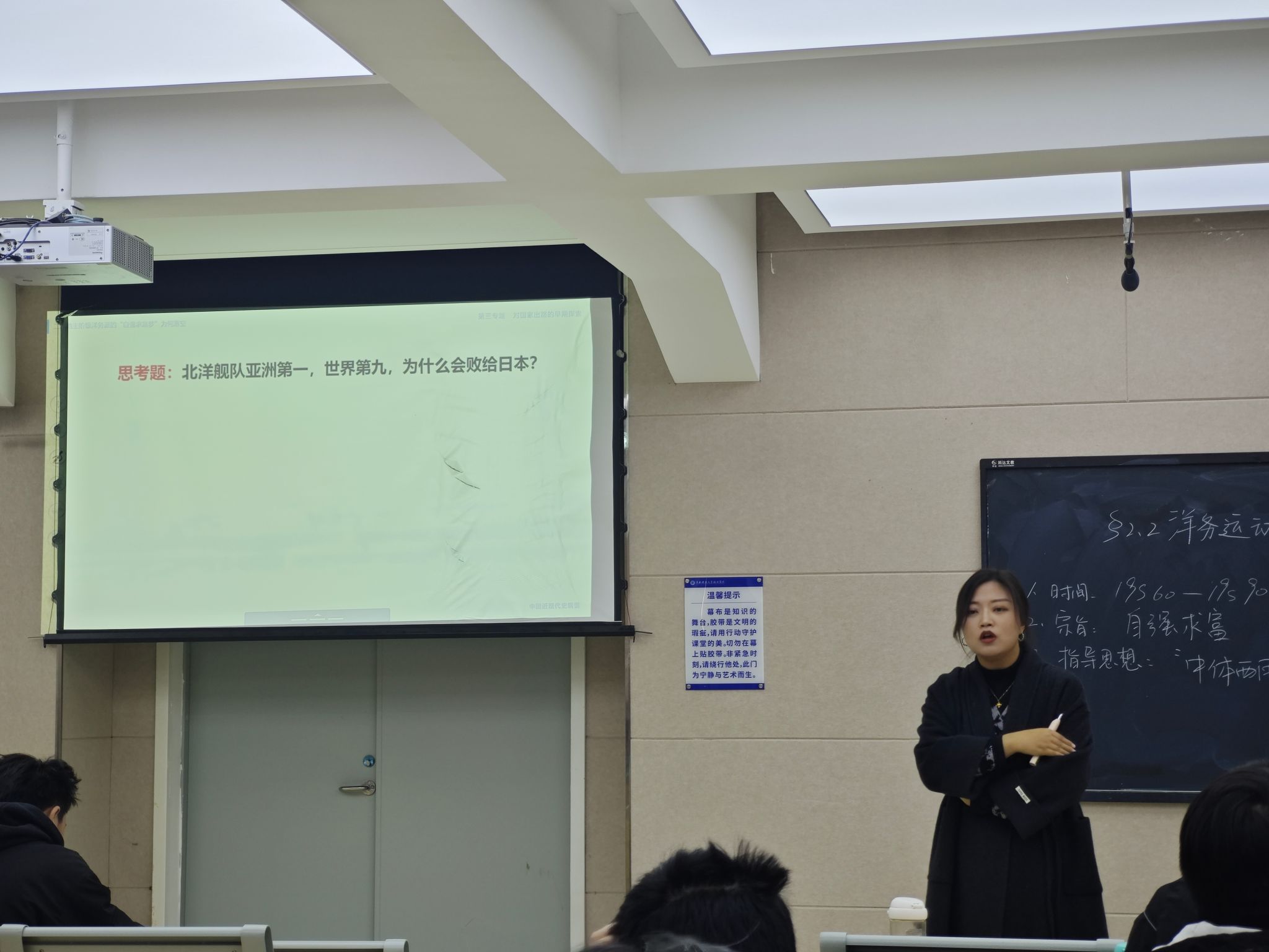 为进一步提升全校教学质量,展示bst365教师的教学水平与风采,2025年3月19日,bst365尹伶伊副教授在教学楼401以《中国近现代史纲要》第二章第二节“洋务运动的兴衰”和第三节“维新运动的兴起与失败”为主题,为全校师生带来了一堂内容丰富、形式新颖的示范课教学。此次示范课通过课前预习、课中问题式教学和课后习题总结相结合的方式,充分展现了尹伶伊副教授的教学智慧与专业素养,也为全校思想政治理论课教学提供了宝贵经验。