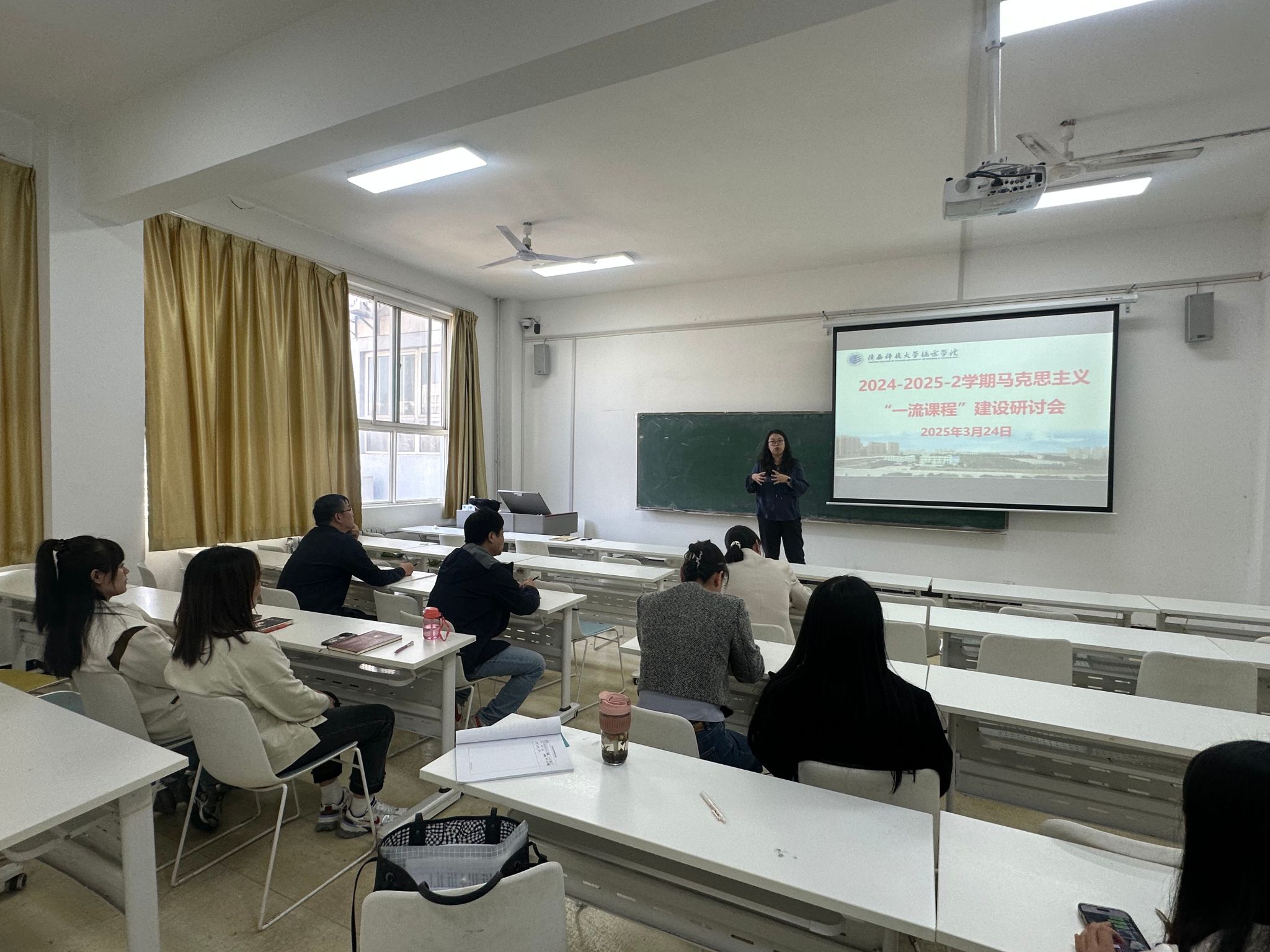 在研讨环节,与会教师踊跃发言。魏晓晓老师结合自己参与“一流课程”建设的经验,提出“一流课程”必须坚持内容为王,同时注重教学方法的创新,建议将微课、教案设计融入日常教学积累中。刘雅朦老师则从信息化教学的角度,分享了如何利用智慧教学工具提升课堂互动性的实践案例。任芳老师表示,将以教学微课大赛为契机,打磨教学技能,争取在比赛中展现马院教师的风采。