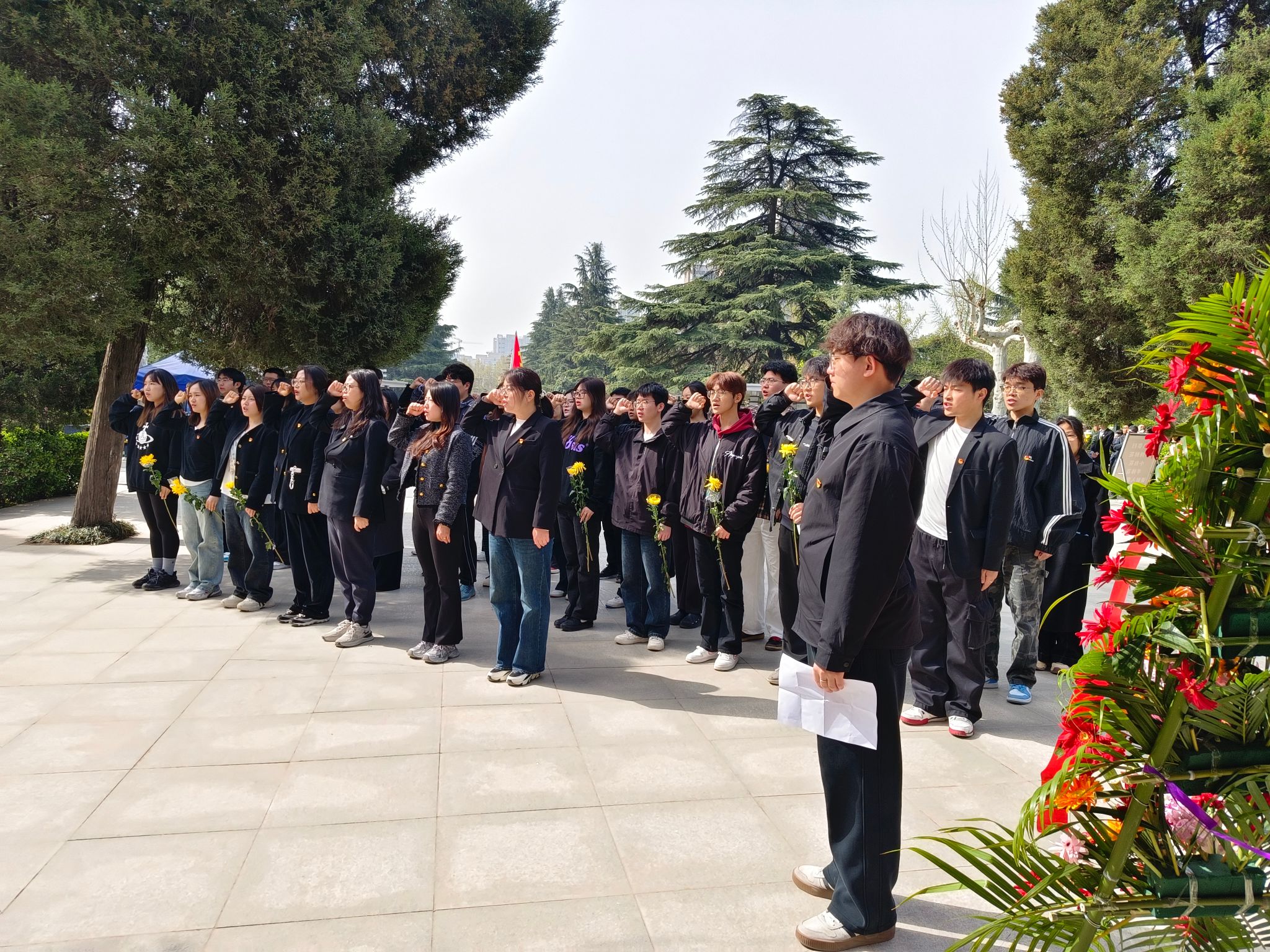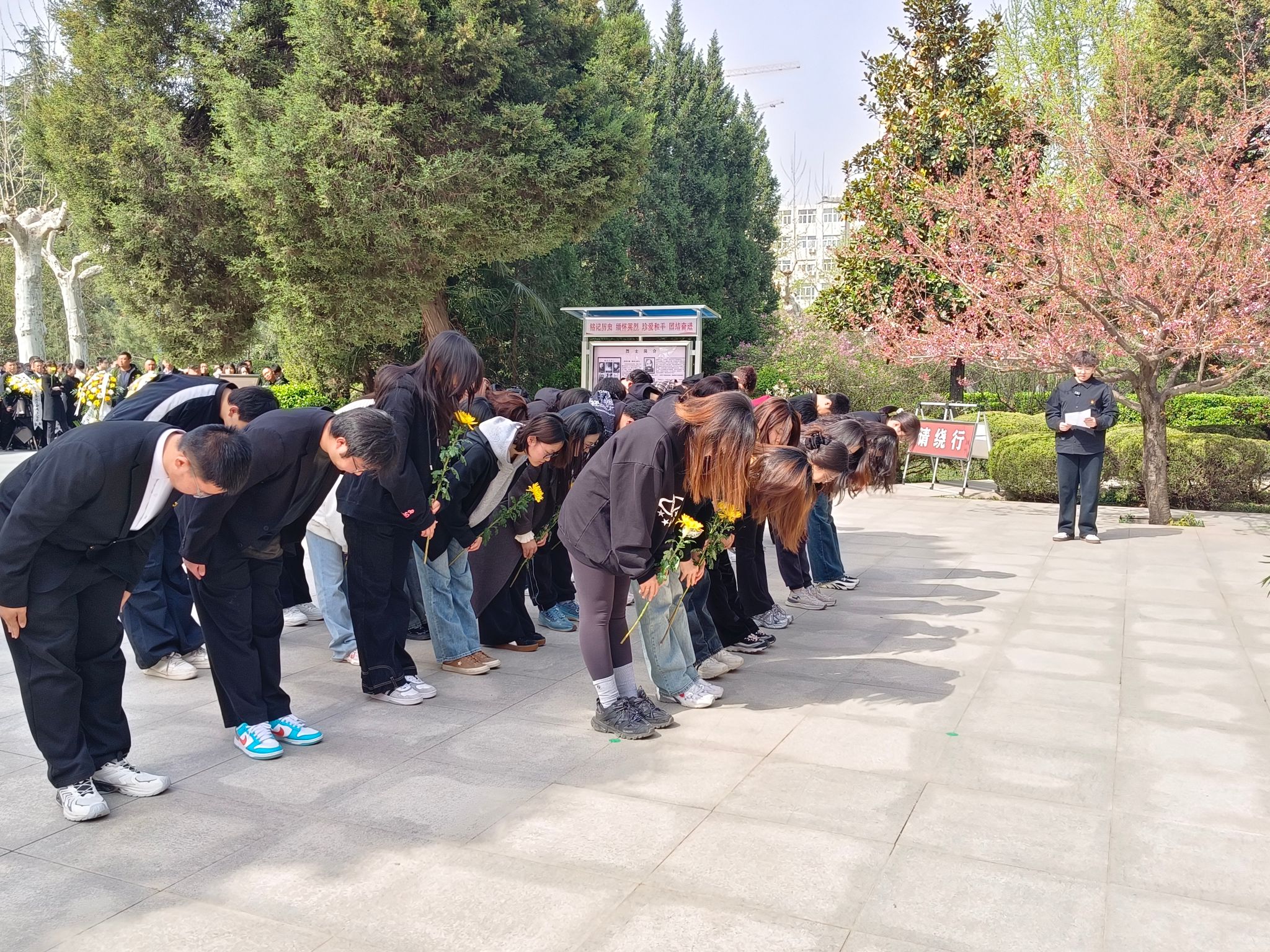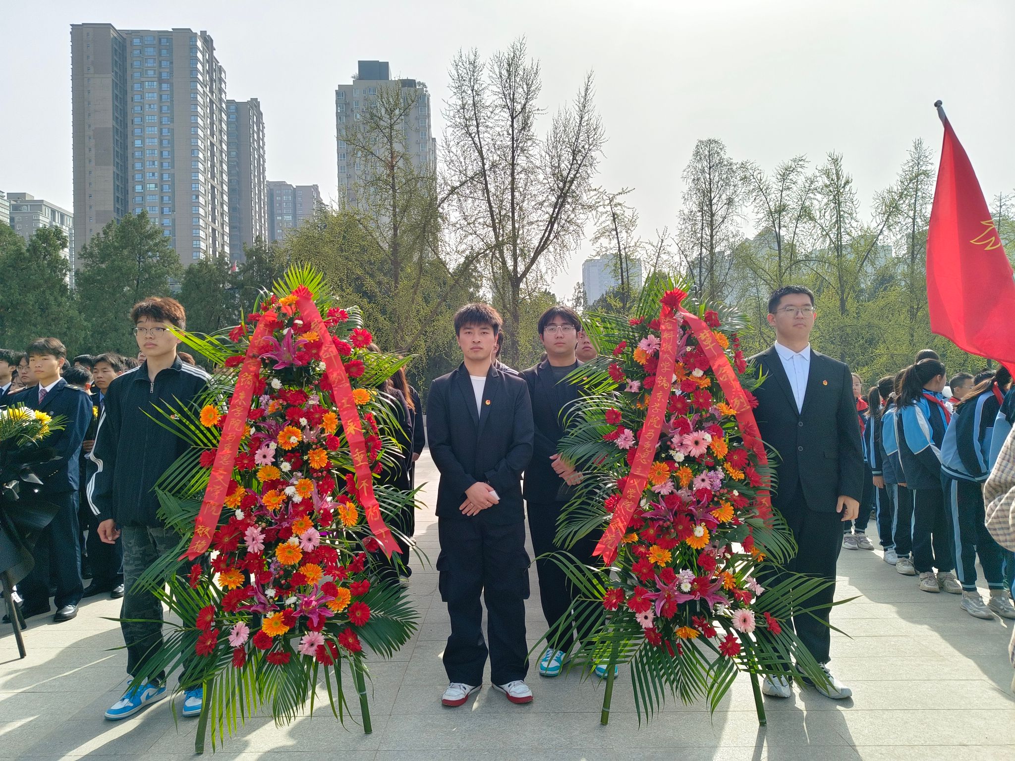 在西安烈士陵园内,苍松翠柏环绕,气氛庄严肃穆。bst365师生们怀着无比崇敬的心情,缓缓步入这片神圣的土地。仪式开始,员工代表迈着整齐而坚定的步伐,向烈士纪念碑敬献花篮。花篮两侧,挽联低垂,寄托着对先烈的无限哀思与崇高敬意。
