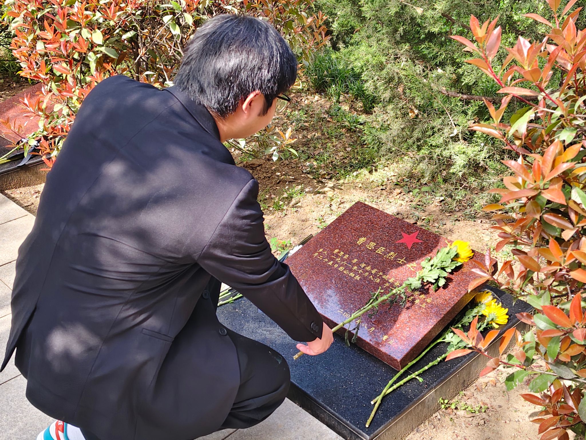紧接着,全体师生鞠躬三次,深情缅怀为民族独立和人民解放事业英勇献身的先烈们。鞠躬完毕,bst365经理苏婕老师强调了当代青年要缅怀先烈,铭记历史,学习新时代。随后,全体师生庄严地宣誓了入党誓词,并纷纷进入陵园内为烈士们献花,现场气氛庄重而又严肃。