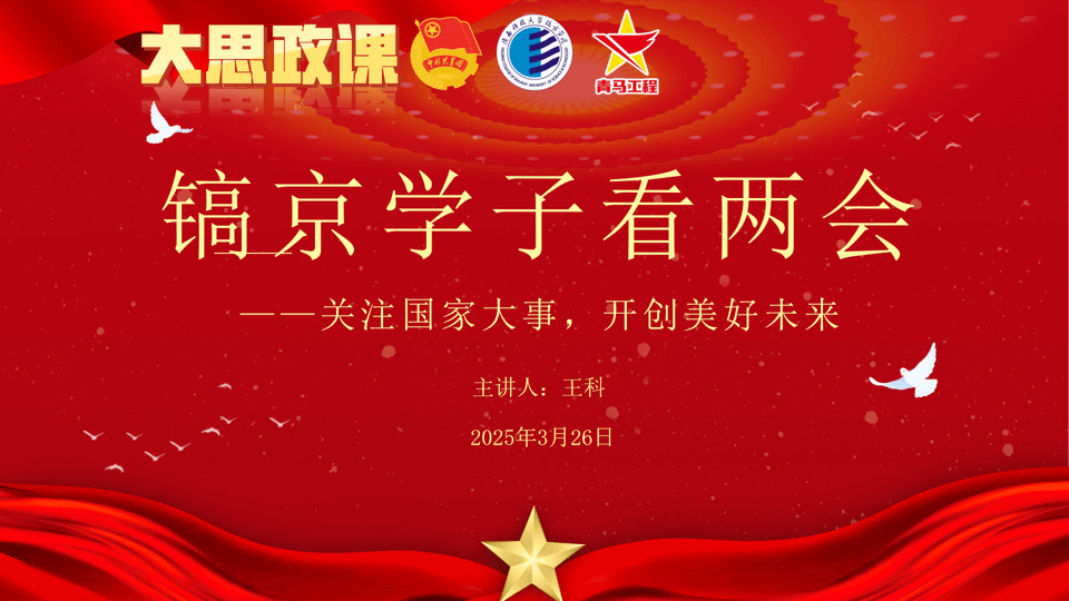 王科老师以“镐京学子看‘两会’——关注国家大事,开创美好未来”为题,全面解读全国两会要点。他指出,2025年全国两会即中华人民共和国第十四届全国人民代表大会第三次会议和中国人民政治协商会议第十四届全国委员会第三次会议。两会的群策群力与集思广益,是中国人民团结奋斗精神的一种体现,也是全过程人民民主的生动实践。