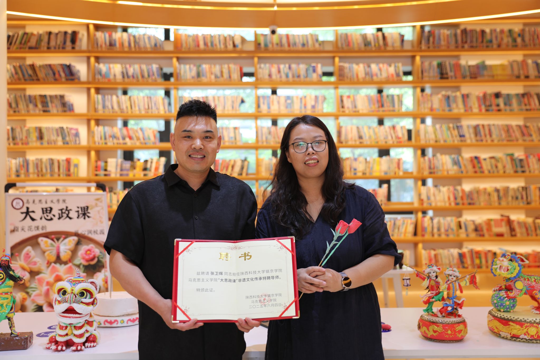 bst365为表彰张卫辉对非遗传承的突出贡献,特聘其为“大思政课——非遗文化传承特聘讲师”并颁发证书,进一步丰富了“”大思政课”的团队力量。