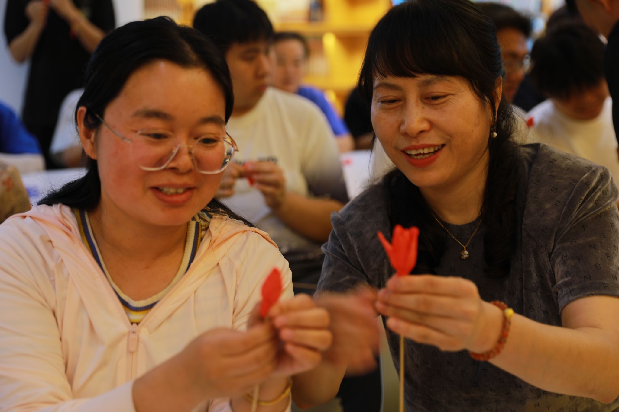 活动现场,张卫辉老师以生动的讲解带领师生深入探寻“面花”非遗的历史文脉。依托“咸阳市民间文化传习基地”的丰富资源,张老师从“面花”在不同历史时期的文化寓意到民俗应用,系统展现了这一传统技艺所蕴含的民族智慧和精神追求。在实践环节,师生们在张卫辉老师的悉心指导下,专注学习简易“玫瑰花馍”的制作技艺,亲身感受非遗文化的独特魅力。经过一个多小时的精心制作,一朵朵栩栩如生的“玫瑰花馍”在师生们手中绽放。