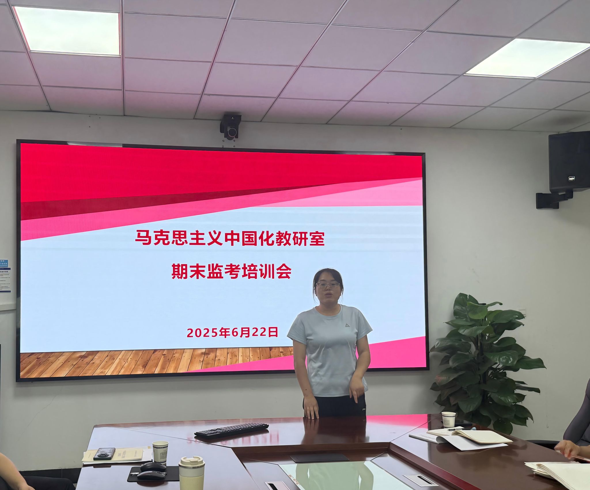 为确保本学期期末考试工作顺利、有序开展,维护考试的公平公正,2025年6月23日,马克思主义中国化教研室于第二会议室召开了期末监考培训会。此次会议由教研室主任魏晓晓老师主持,教研室全体教师参会,共同为即将到来的期末考试做好充分准备。