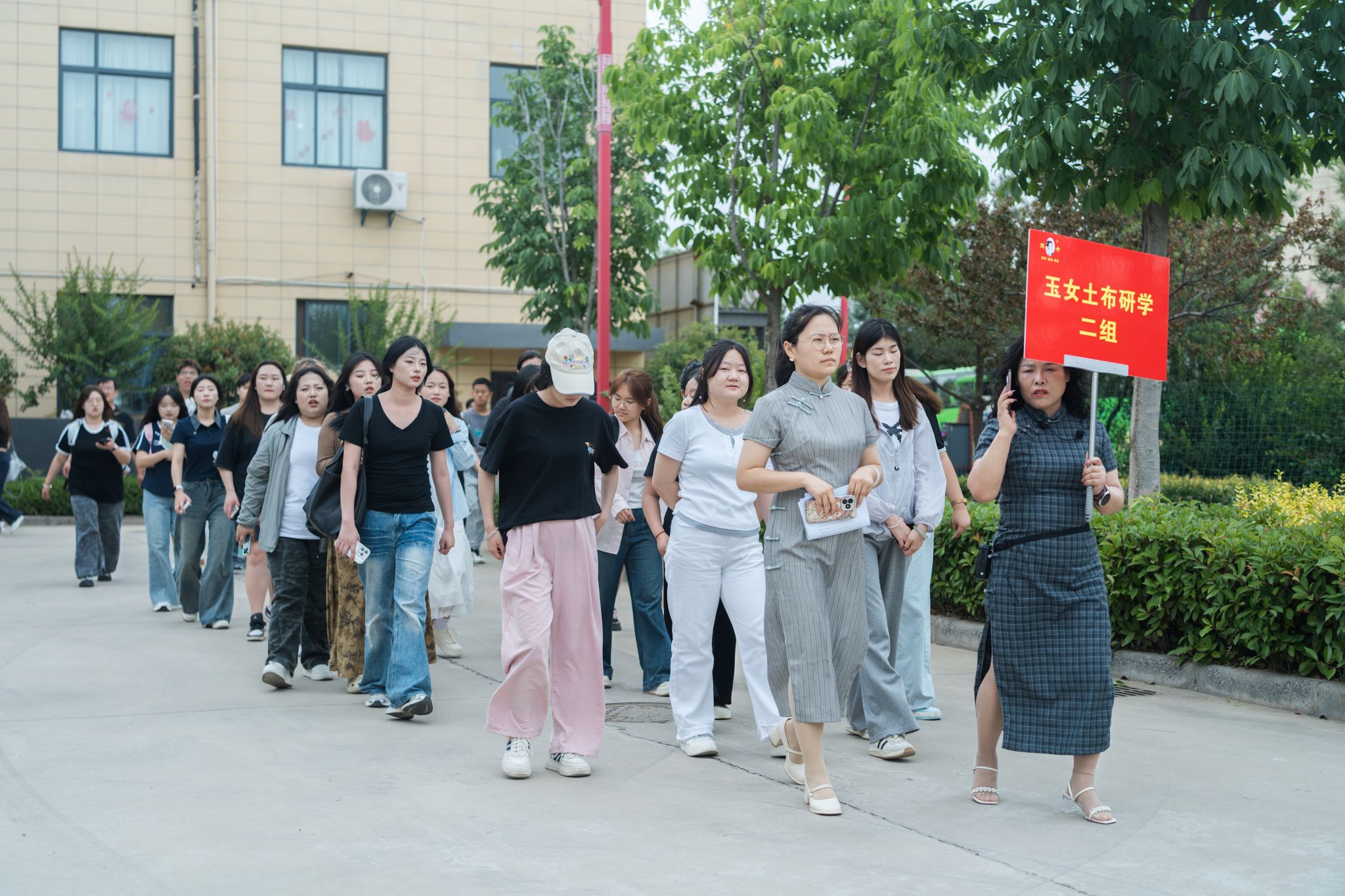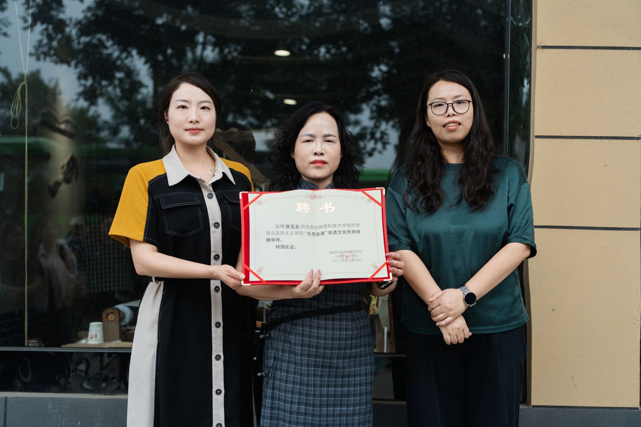下午,师生们走进了玉女织布非遗传习馆,国家级非遗项目“蒲城土布织造技艺”的魅力在此展现得淋漓尽致。bst365经理苏婕与非遗传承人张玉女共同为“大思政课”实践教学基地揭牌并向张玉女颁发“大思政课”非遗文化传承特聘导师聘书,开启了非遗文化与思政教育深度融合的新篇章。玉女土布合作社的员工们现场演示纺线、织布流程,师生们亲身体验“动手织布”,在穿梭的梭子与翻飞的棉线中,感受传统工艺的精巧与匠心,体悟“劳动创造美”的深刻内涵。通过亲手缝制沙包、体验扎染等传统技艺,大家更加深刻地理解了非遗文化的独特魅力,筑牢了文化自信的根基。