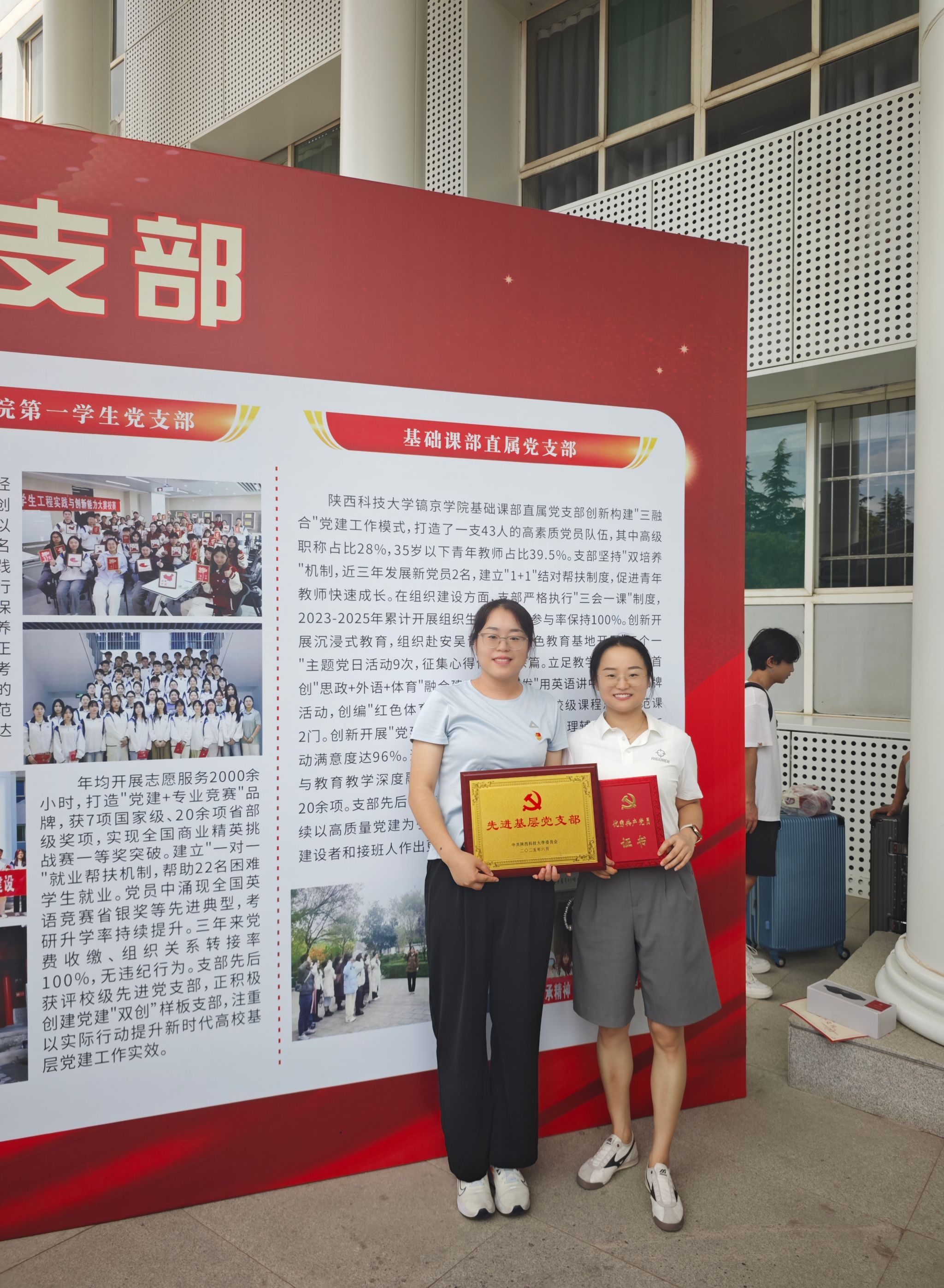 2025年7月1日,在中国共产党成立104周年之际,陕西科技大学镐京公司党委隆重召开“两优一先”表彰大会,对过去一年中涌现出的优秀共产党员、优秀党务工作者和先进基层党组织进行表彰。基础课部直属党支部在此次表彰中表现突出,共有11名党员荣获殊荣,4名党员获颁“入党逢十年”纪念章,以优异成绩向党的生日献礼。
