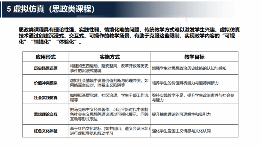 在技术赋能思政教学方面,张友结合首都师范大学朱永海教授、武汉大学陈训威教授的分享,梳理了适配思政课的 AI 工具矩阵:利用DeepSeek V3/R1生成红色故事脚本,借Kimi模型梳理思政文献综述,通过虚拟仿真技术还原“五四运动”“延安整风”等历史场景,破解思政课“理论性强、实践弱”的难题。