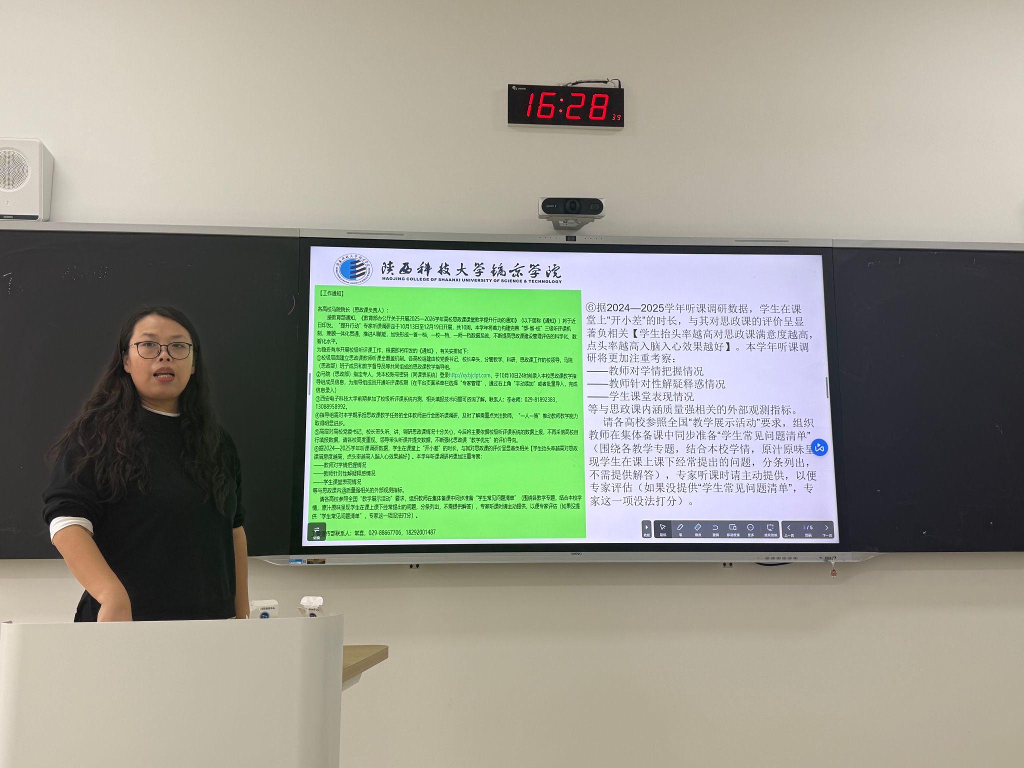 为深入贯彻落实《教育部办公厅关于开展2025-2026年高校思政课课堂教学提升行动的通知》精神,扎实推进公司思想政治理论课建设,2025年9月28日,bst365于教学楼219召开本学期周例会,重点围绕新一轮思政课听课安排、团队队伍建设、教学资源完善及下一阶段工作部署等核心议题展开。会议由公司主要负责人主持,全体专任教师参加。