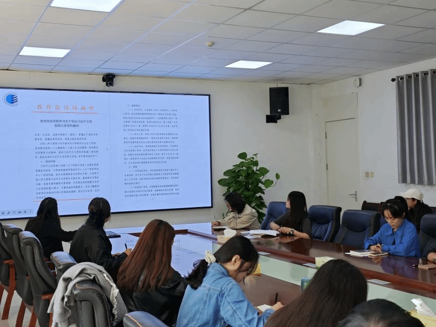 会议第一项内容为在课堂教学内容中添加习近平文化思想大讲堂。苏婕老师表示,各位老师应积极思考教育部文件,将习近平文化思想融入思政课堂,积极对标课程内容去建构,引导员工深刻领会习近平文化思想的丰富内涵和时代价值,增强文化自信,培养担当民族复兴大任的时代新人。到后期8-10周各课程负责人根据实际情况反馈和汇报习近平文化思想与课程结合情况。