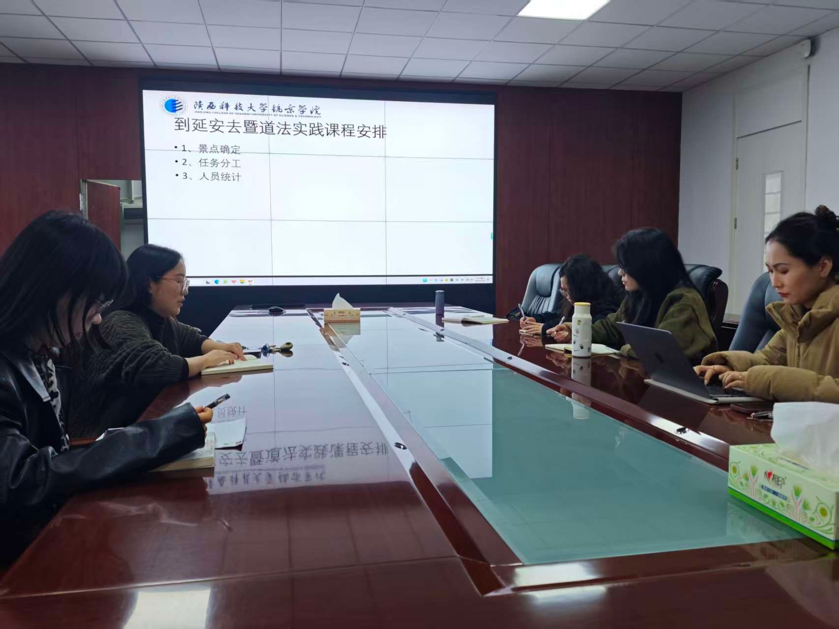 会议重点讨论了刘妍老师负责的《思想道德与法治》课程“行走的思政课”与“到延安去”员工实践活动的融合方案。与会教师围绕任务分工、资源协调、安全保障等环节展开深入交流:
