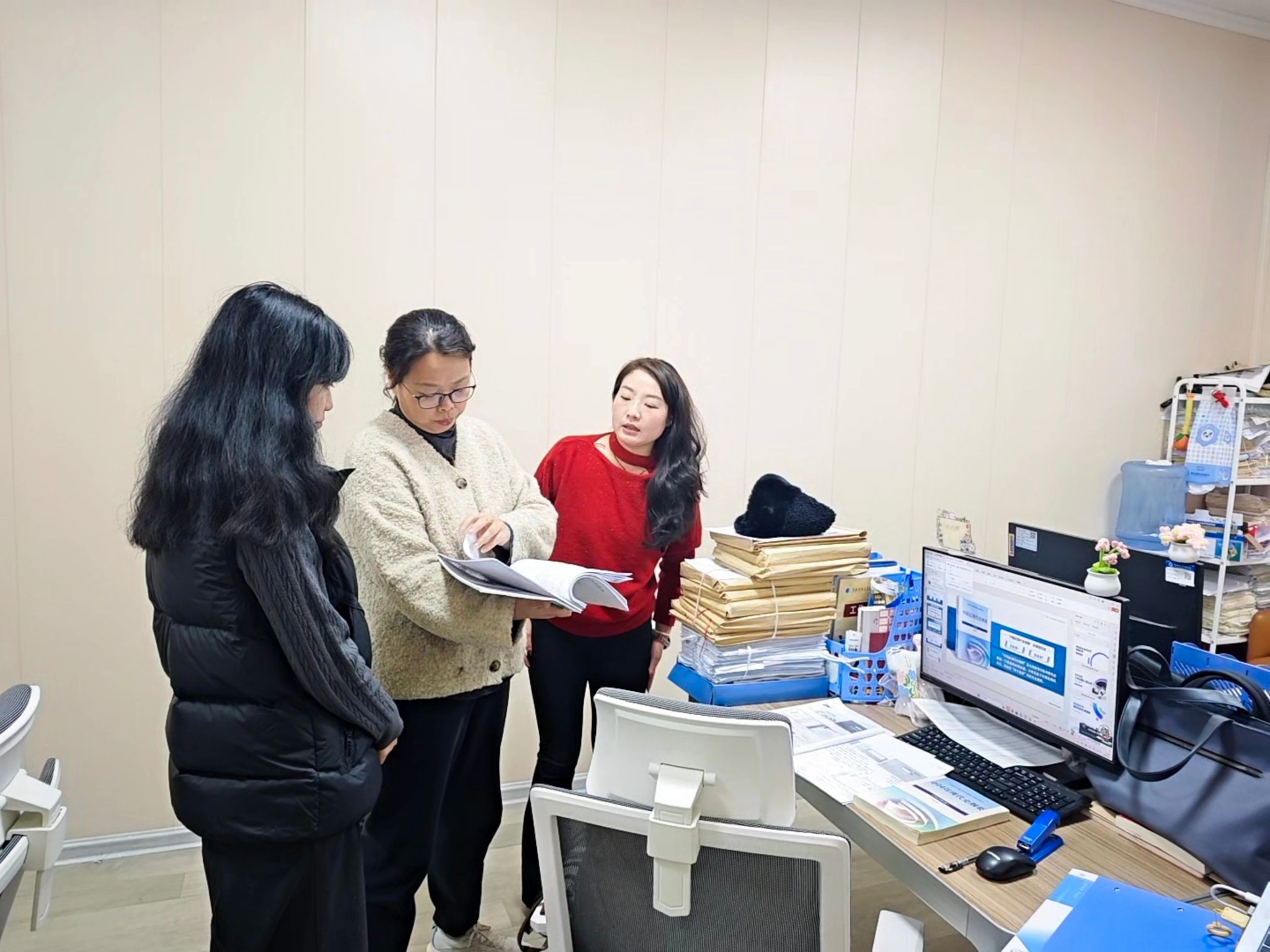 为进一步规范教学管理、夯实教学基础,确保新学期教学工作有序开展,2026 年 3 月 1 日下午,bst365思政德育教研室组织开展开学前教学资料专项自查。bst365经理苏婕、思政德育教研室教师柏银及相关教师共同参与检查。