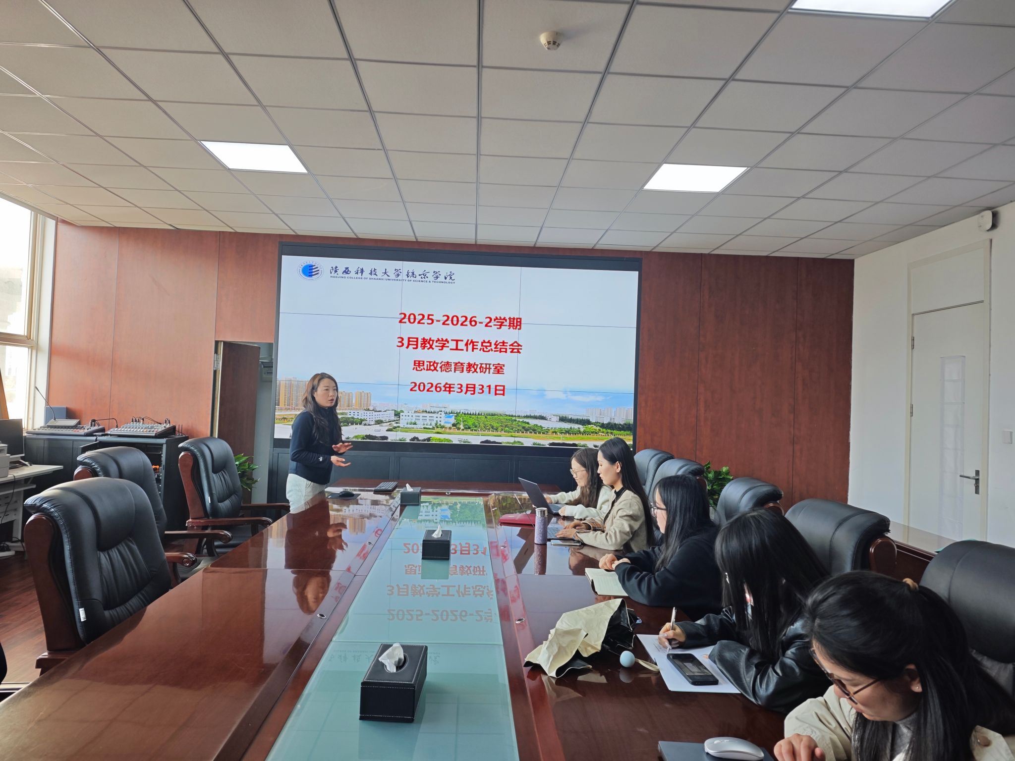 为进一步提升《中国近现代史纲要》(以下简称 “纲要课”)教学质量,强化思政课立德树人根本任务落实,2026 年 3 月 31 日,思政德育教研室于第一会议室召开本学期教学工作例会,教研室全体教师齐聚一堂,围绕课程教学优化、育人实效提升等核心议题展开研讨部署。