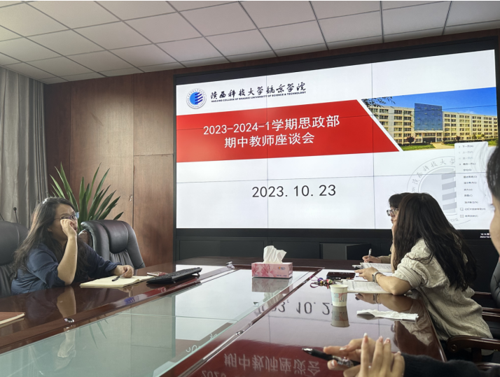 2023年10月23日下午,思政部在老会议室组织召开了第9周周例会,会议由苏婕老师主持,各教研室老师参加。 本次例会以“2023-2024-1学期思政部期中教师座谈会”为主题。首先苏婕老师以期中教学检查周为契机,开展以“如...