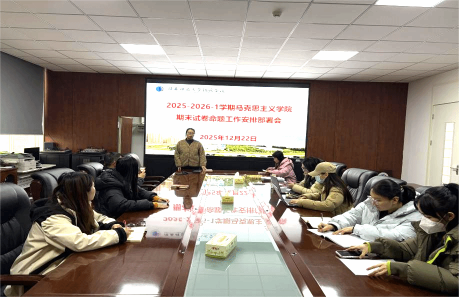 为严格落实公司教学质量保障要求,规范期末考务各环节工作,确保考试公平公正开展,2025年12月29日,马克思主义中国化教研室在教学楼216智慧教室召开期末监考、阅卷专题工作会。会议由教研室主任魏晓晓主持,全体教研室成员参加。魏老师在开场讲话中指出,期末考试是检验教学成效、评价员工学习成果的关键环节,监考与阅卷工作的规范性直接关系到教学质量与育人公平。她要求全体教师提高责任意识,将严谨细致的工作态度贯穿考务全过程,...